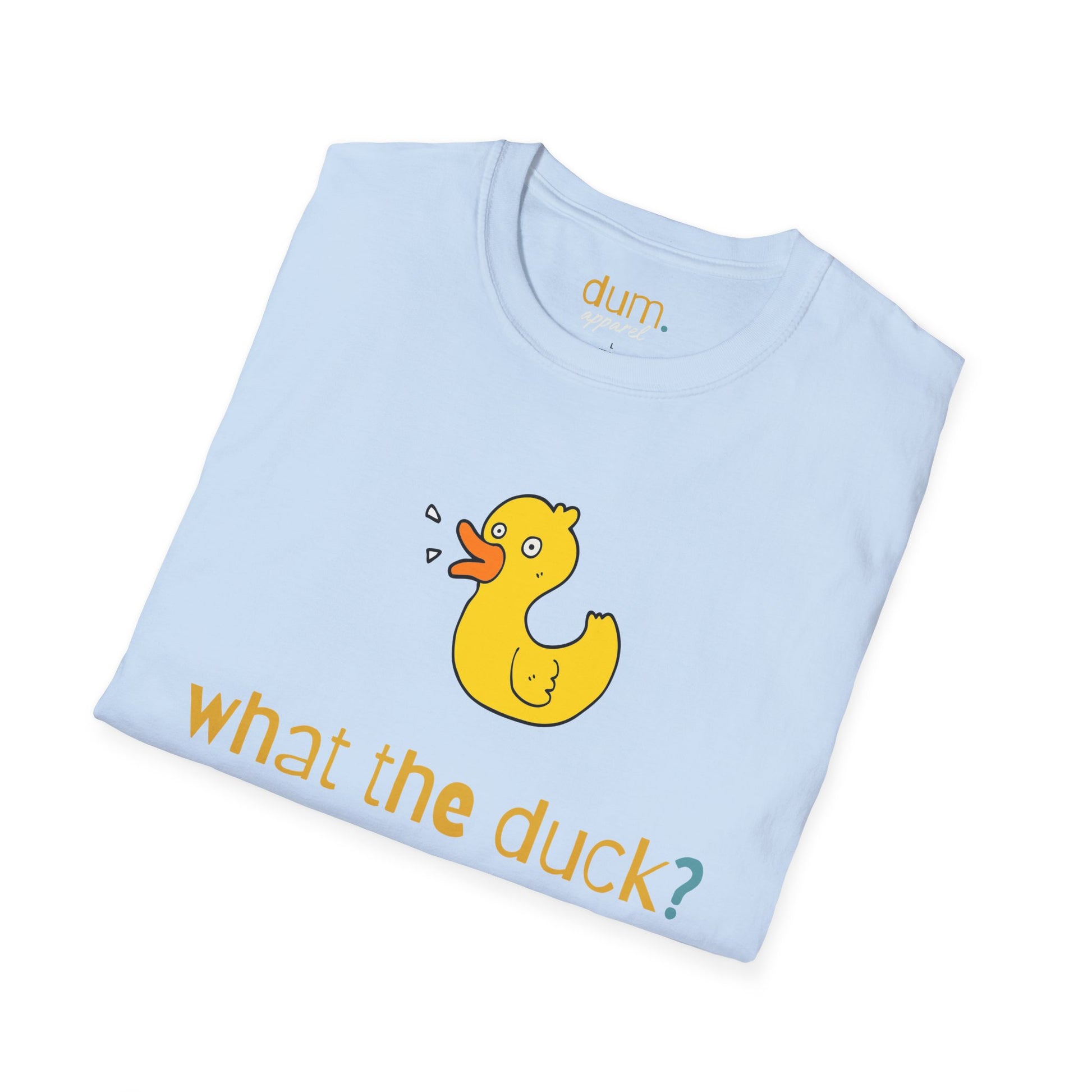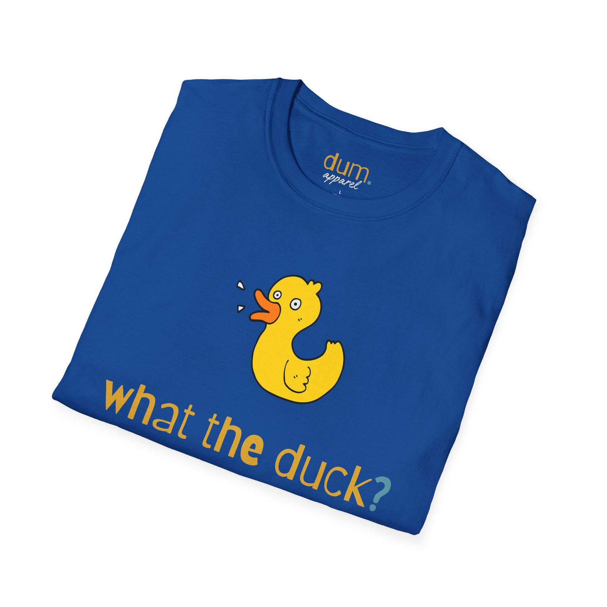 It’s a bright yellow rubber duck with the words “what the duck?” That’s the joke. No deep meaning, no hidden message — just a duck being dumb.